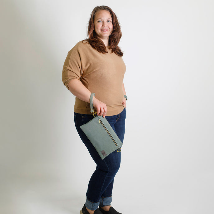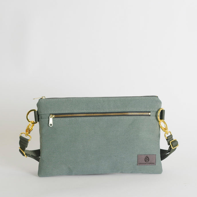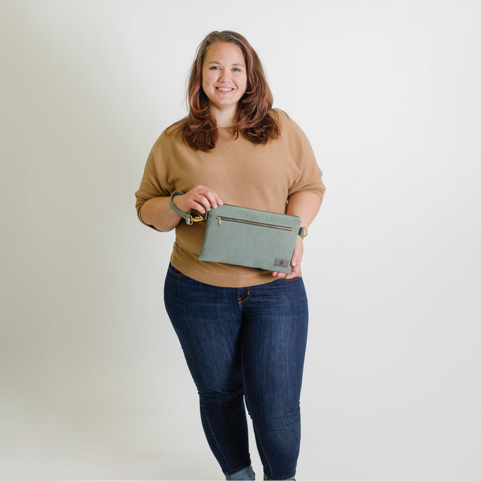 This clever 3-in-1 bag is made from upcycled Army laundry bags! Designed to easily transform from a crossbody to a wristlet to a belt bag. Whether you're running errands, heading out for the night, or traveling light, it adapts to fit your life.