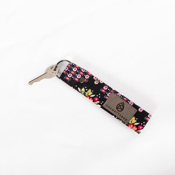 Dress up your keychain game with this sleek and stylish black keychain adorned with a gorgeous floral motif. Elevate the look of your keys while still getting a durable and chic accessory that's sure to make a statement.
