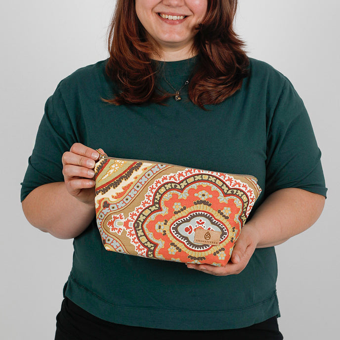 Get ready to glow with an Unshattered makeup kit! Featuring rich paisley-inspired shades, this kit brings playful color and cozy vibes to your beauty routine. Perfect for holding all your beauty essentials, plus a wipe-clean interior reduces the worries of any spills.