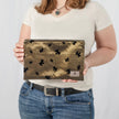Made from shimmery fabric in a scotty dog pattern, this zip pouch is a fun statement piece! You can carry it as a clutch, or store it inside a larger bag to keep your essentials close at hand! Carry your emergency eyebrow pencil, mints, phone, cards and more!