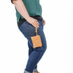 Big enough to hold your cards, lip balm, and change. The exterior of this clip pouch is made from Ultrafabrics premium leather alternative material in a lovely camel color. Not only is it soft to the touch, it also wipes clean easily.