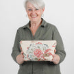 Crafted by women in recovery from reclaimed fabric, each kit features an easy-clean lining, a smooth premium zipper, and shiny gold-tone accents.