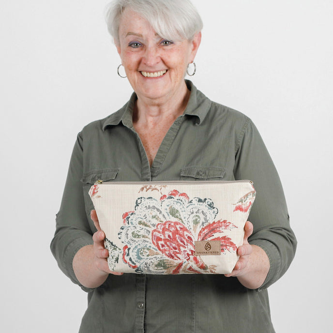 Every woman at Unshattered has a story. Just like these bags are handcrafted from upcycled materials and given new life, each woman is given a new chance to escape the cycle of addiction. When you carry this bag, you carry possibilities for every woman on our team and all the women still struggling who will one day find hope and also become Unshattered.